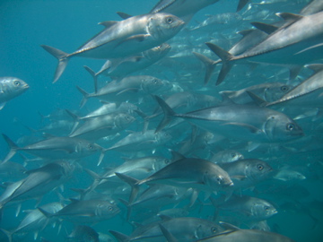 Der zweite Tauchgang ging zu dem besagten Korallenriff auf dem die Fähre in Seenot geraten war. Vor wir abtauchten sahen ein paar Seelöwen die offensichtlich auf der Jagd waren und springende Fische bei denen wir uns nicht ganz sicher waren ob sie das tun um Jäger zu verunsichern oder was dahinter steckt.