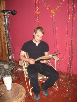 Damit ich auch ja nicht zuviel Schlaf bekäme kam Diego auf die Idee dass ich (zufällig ganz in schwarz gekleidet) den idealen Prediger für sein Musikvideo abgeben würde. Und so bin ich jetzt Nebenfigur eines mexikanischen Musikvideos der Band "NATIO".