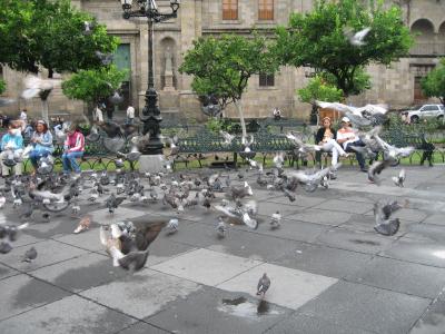 Neben angenehmen Fußgängerzonen, Plätzen und alten Gebäuden gibt es in Guadalajara auffallen viele Tauben.