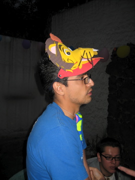 Ausserdem spielte eine Mariatchi Band auf und im späteren Verlauf des Abends gab es noch zwei gefüllte Piñatas . So kam ich auch dazu mal auf eine Piñata eindreschen zu dürfen...